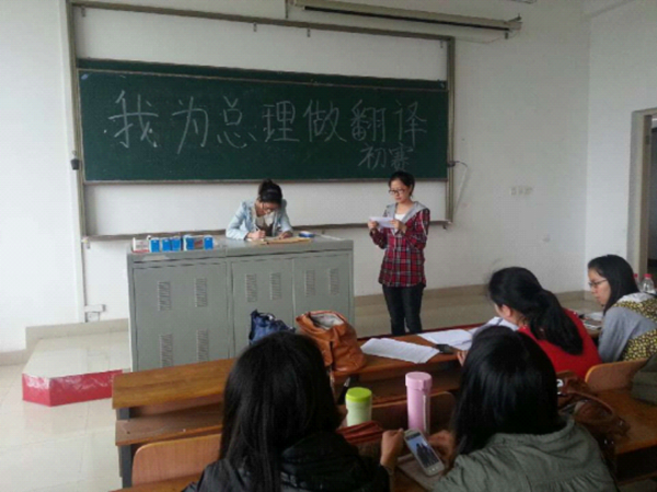 2013年5月9日,英语文化节之我为总理做翻译口译大赛在教学楼1-303和1-304如期举行,全院共四十二名选手参赛,包括经管系、土木系、人文系、化药系以及外语系。