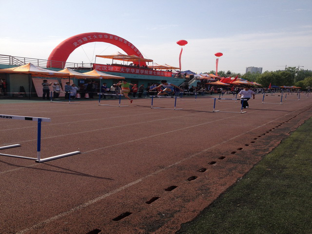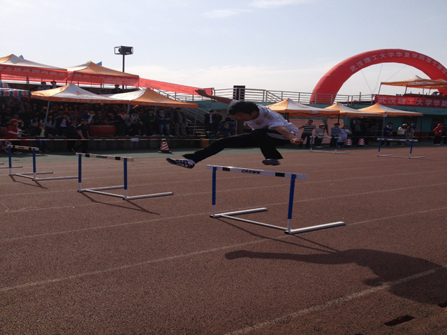 2013年4月13日早9:10,男子110米跨栏预决赛正式拉开序幕。男子110米跨栏的外语系选手虽然只有一名取得了小组第三名的成绩,但是他超越了自己,跨过了上一届最后一跨撞栏的坎。