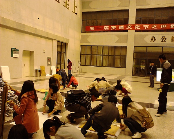 活动前期准备:4月10日—4月20外语系开始读书节策划活动。4月21日早晨开始布置活动场地,外语系的同学们搬架子,贴小报,忙的不亦乐乎。