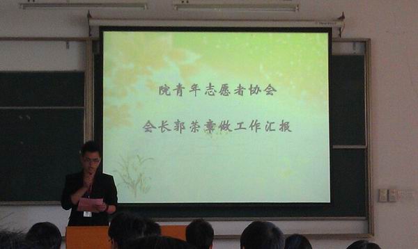 我院于4月10 日在1教101召开了全院青年志愿者协会表彰大会。到场的有院青年志愿者协会各部门成员,各系青年志愿者协会成员和各志愿队的志愿者。
