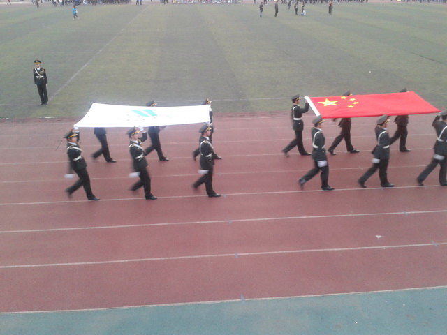 为在新一届校运动会上更好展现华夏学子风采,2012年4月10日下午六点半,在我校运动场上,第一次完整的方阵演练正式开始。国旗班、彩旗队以及各系方阵蓄势待发。