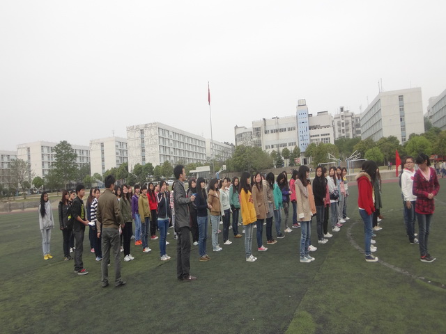 合着高亢的节拍,踏着小碎步快速找准自己的位置,自然变换出一个“WIN”方阵。这支由80名大一学生组成的方阵队伍高喊着“青春飞扬,外语领航,驰骋赛场,勇创辉煌”的口号,她们正在为运动会开幕式积极准备着。