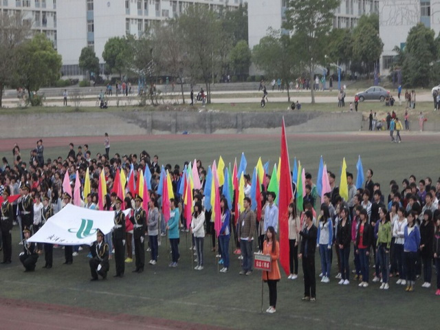 四月十日下午六时,武汉理工大学华夏学院春季运动会排练预演正在进行。