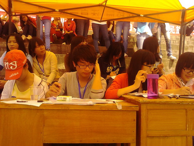 各系的大本营:橙色的帐篷内,有专门的同学,准备好桌椅,饮水机等,为运动员提供休息的地方,并时刻记录系中的比赛情况。