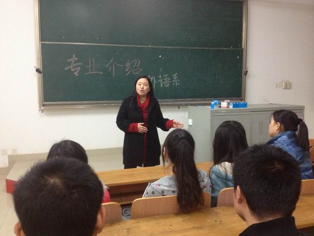 唐老师首先就外语系的现有三个方向做了比较,强调翻译方向的英语,目前社会对其人员的需求量比较大,对学生要求比较高,学好了翻译可以当老师,但学教育方向不一定能从事翻译工作。其后也讲了自己英语学习的心得,学生们都听的很认真。