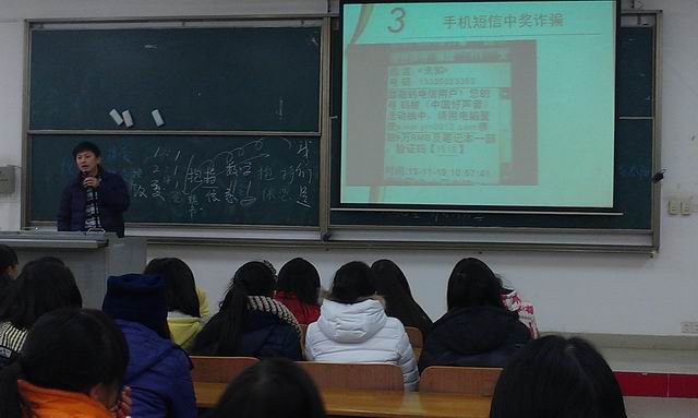 毋庸置疑,这是一个网络时代,我市网购用户规模数量也仅次于北京、上海、广州,且我市为全国高校最多地区,在校学生高达105万,可见武汉市网骗获利来源广,利润丰,当然成了网骗魔爪必经之处。通过PPT,大家了解了网购常见骗术就是低价诱惑和奖品丰厚诱惑,同学们喜欢的服饰、鞋类、化妆品类等都在十大网购危险产品排行榜上榜上有名。郭老师强调,大家网购必须慎重,首先应抵制诱惑、慎选交易对象、确认IP地址,其次要拒绝线下交易和交付定金交易。对于虚拟的网络中奖信息,同学们更应保持清醒的头脑,抵制诱惑。