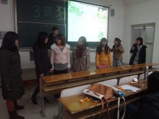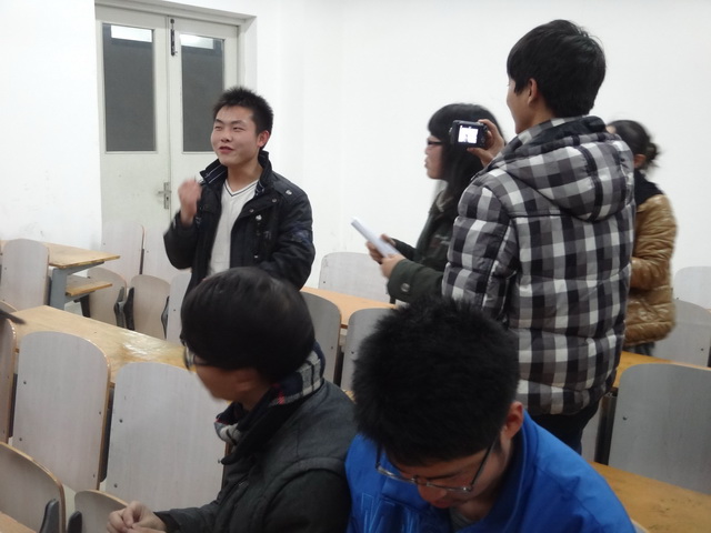 首先,班长肖恒对批评与表扬大会的目的进行一番简短的说明,就直接进入总结大会,由纪检委员及生活委员对前期的考勤和寝室卫生进行总结,以及指明大家今后努力的方向。紧接着在“家乡话大冒险”主题活动中,全场火热的气氛顿时迸发到了极限。首先第一个是游戏环节——口口相传,即同学们用自家方言将同一句话相继传递下去。每当最后一名同学的结果与第一个同学所说的大相径庭时,全场哈哈大笑。第二个环节为方言大杂烩,其中尤为精彩的有杜艺和李思文同学带来的“吃货的早晨”,二人自打节拍,用武汉方言将武汉特色早点以说唱的形式一一列举出来,伴着极强的节奏,和谐的韵律,各种特色小吃瞬间鲜活起来。其次,张文涵、刑雯彬、申展、曾丽娜共同演唱自主改编的《最炫襄阳风》,用新颖的方式将襄阳的风土人情表现得淋淋尽致。在第三个环节中,李思文扮演HXTV(华夏电视台)的记者,携领摄像助手罗涵对班里的数名同学进行走访,让同学们用方言在“电视台”宣传自己的家乡美。最后一个环节是《华夏肖恒秀》,期间,肖恒和肖遥二人围绕“老师的家乡话”分别将各自高中时期的老师的方言讲话风格模仿得惟妙惟肖。