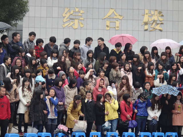 2012年11月16日,外语系大四学子及其老师齐聚综合楼前,拍摄她们大学最后一次集体照—毕业照。冷冽的寒风,淅沥的小雨挡不住这些即将毕业的学子们要深深记住曾陪伴她们一起走过大学时光的同窗们!