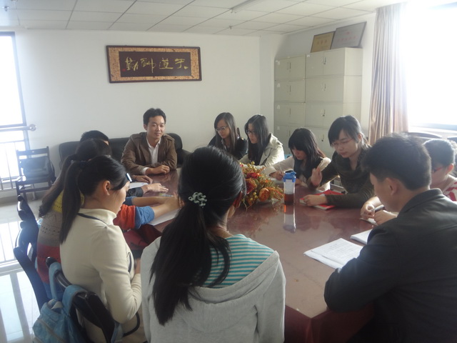 2012年10月31日中午十二点,外语系学长班主任会议在综合楼11楼隆重召开。参加此次会议的有09级和10级的学长班主任,同时外语系学工办主任马勇老师和系团总支书记郭杰老师均出席了本次会议。