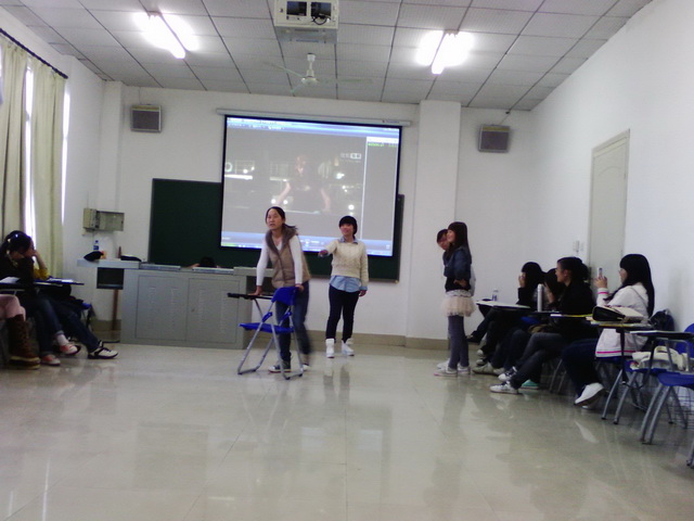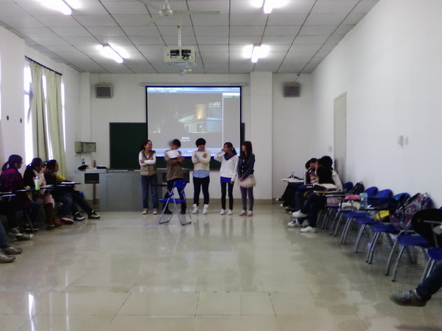2012年10月31日上午10:20,外语系1122班在实验楼244-1首次举行关于英美电影的口语小演讲。此次活动由英格兰外教Ben全权安排,外语1121班全员参与。