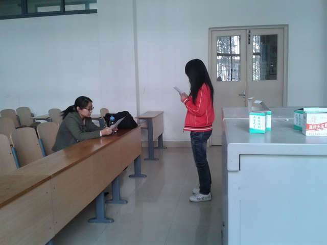 2012年10月日中午12:10,由外语系青年志愿者协会承办的讲师团面试工作在2-102、2-107正式拉开帷幕。此次活动面向外语系大一大二全体学生,外语系白燕琴老师、刘潇老师担任评委。