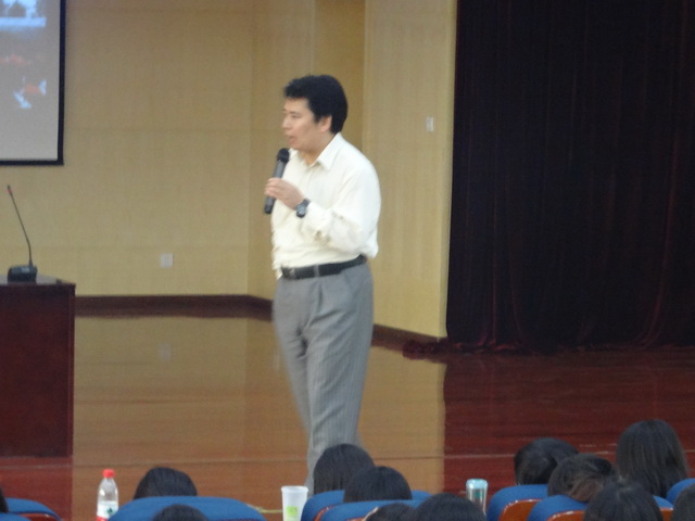 2012年9月18日上午10:00,一场别开生面的讲座在新学术报告厅隆重举行,主持此次讲座的是武汉理工大学的雷五明教授,外语系和人文系的全体大一新生参加了此次讲座。