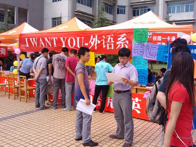 著名作家蒋子龙最近在《人民日报》上撰文,说现代人有“两拼”,有钱人“拼爹”,其他人“拼孩子”!2012年9月8日、9日,是我院新生入学报到的日子,大家的孩子都同在一个学院,自然没什么好“拼”的,那就只好“拼”爹了,是吗?的确,长长的水泥大道上停满了各式各样的名车,车内也走出各类“皮鞋墨镜”族,可是,就让外语系家长们告诉你,咱“拼”的不是“爹”,是“爱”!