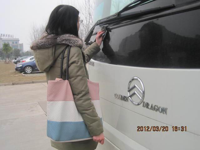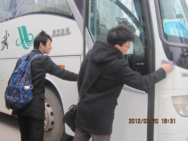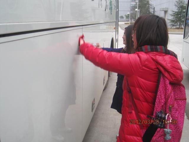 下午下课之后,大家分成小组,每组共8位同学,一同前往图书馆旁边的停车厂,擦洗停在学院内的三辆校车。活动中,虽然没有专业的清洗工具,但是每个人都拿着自己准备的抹布认真地擦洗着。在分工合作下,经过半个小时的辛苦努力,校车的车身、玻璃及内部环境都被清洗干净,校车顿时焕然一新。