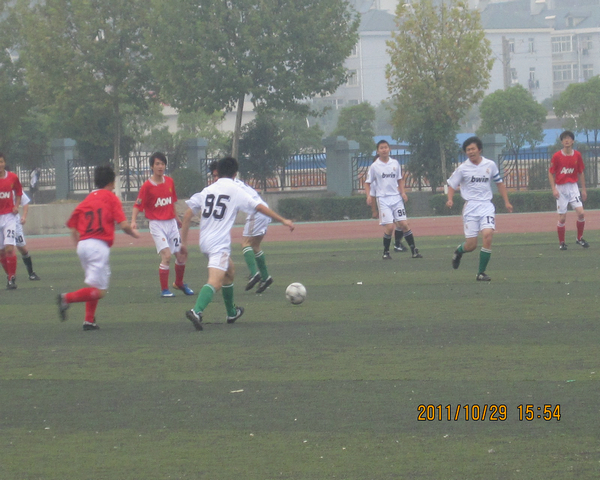 经过中间短暂站休息,运动员们重整士气,准备全力以赴下半场比赛,一声哨响我系与化药系全力进攻,但由于化药系步步紧逼吧我系压在其半场,突然趁我系防守不利,化药系进了一球,到我系并没有丧失信心,赶紧调整心态加强防守,最后一分钟后,由于化药系破门成功,又为其添一球,就这样我系与化药系比分为0:2