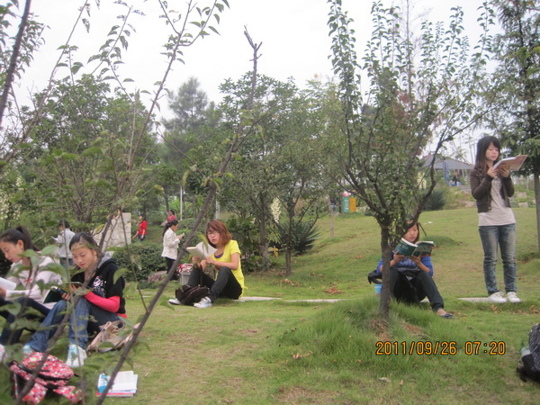 9月26日7:20始,外语系10级学子纷沓而至勤仁坡。她们用自身甜美、历练的声音打破了校园的宁静。这是一次新的开始。学子们有的倚树而立,有的席地而坐,有的互相对背……都以饱满的心态来迎接新的一天。坡上晨读有助于营造一种优良的学习氛围,有利于同学们打开声腔、显出灵动的气息,有利于弘扬我院的纯朴学风。希望我们的晨读之声能够越发悠远;希望我们的晨读团队能够注入新血液;希望我们的校园之风能够生生不息!