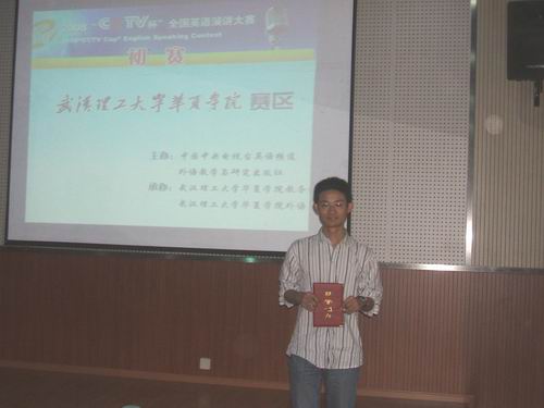 2008“CCTV杯”全国英语演讲大赛由英语国际频道和外语教学与研究出版社联合主办。大赛面向全国1000多所高等院校35岁以下中国籍在校学生,要经过初赛、复赛、半决赛、决赛、总决赛五轮赛事。初赛在各省大学外语教学研究会领导和协调下,由参赛学校各自承办,我院初赛由教务处和外语系具体负责组织实施。当晚参加比赛的16名选手是从一轮比赛130余名参赛选手中选拔而来,其中三名为非英语专业选手。他们以流利的英语和从容自信的表现赢得了评委和观众的赞许。英语1062班胡健以96.5分的高分夺得一等奖,机械系两名非英语专业的选手包揽了二等奖。参赛选手都表示,参加英语演讲比赛有助于提高英语水平,历练演讲技巧,并增强自信,锻炼自己的表现能力。