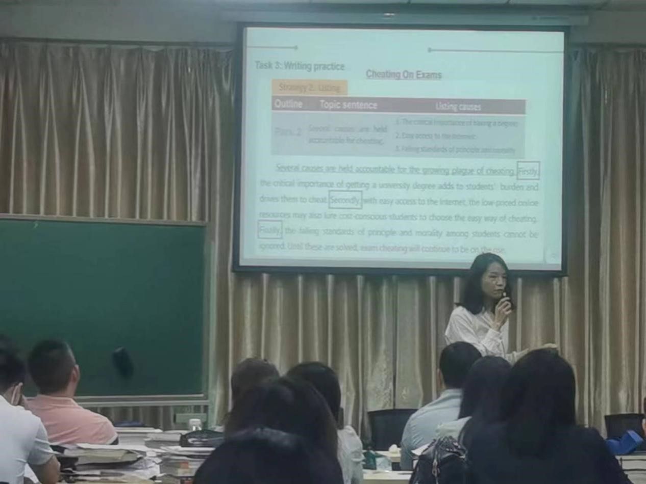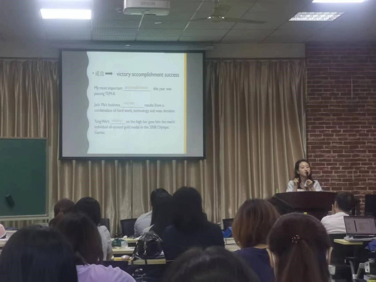 5月19日中午,在语言文学楼313教室,外国语学院的青年教师向学院领导和老师们展示了各自的课堂教学,收获了广泛好评。青年教师朱丹丹、王若男、阳江玲、吴珍妮、杜爽共5人参加了此次教学展示。