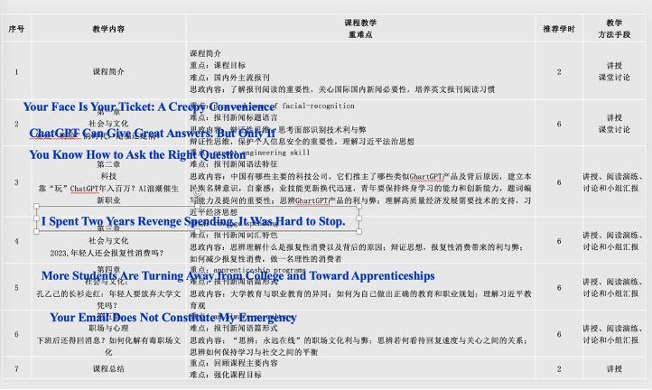 本课程教材均选自英美国家高级报刊,不仅如此授课教师团队还选择了《中国日报》,《环球时报》、《CGTN》等权威国内英文期刊的新闻材料做为教学的补充材料,通过不同的角度探讨同一个话题,在丰富学生语言的同时也提高了学生的思辨能力。未来,《英语报刊选读(人文)》课程团队将致力于课程教材的发展建设,提高课程学习者的语言能力、思辨能力、跨文化交际能力和国际视野。