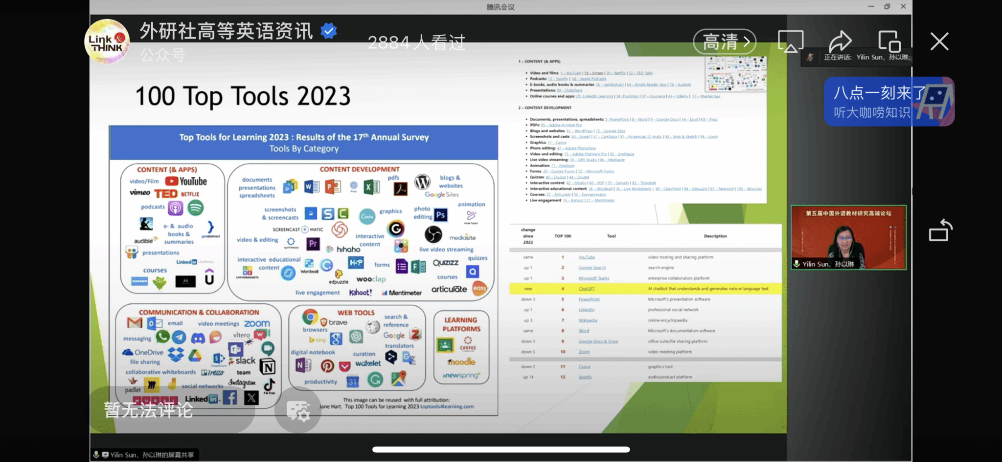 9月22日,《英语报刊选读(人文)》课程团队负责人陈丹丹老师以及课程成员吴珍妮老师参加了北京外国语大学中国外语教材研究中心和外语教学研究中心共同主办的第五届中国外语教材研究高端研究论坛线上论坛。