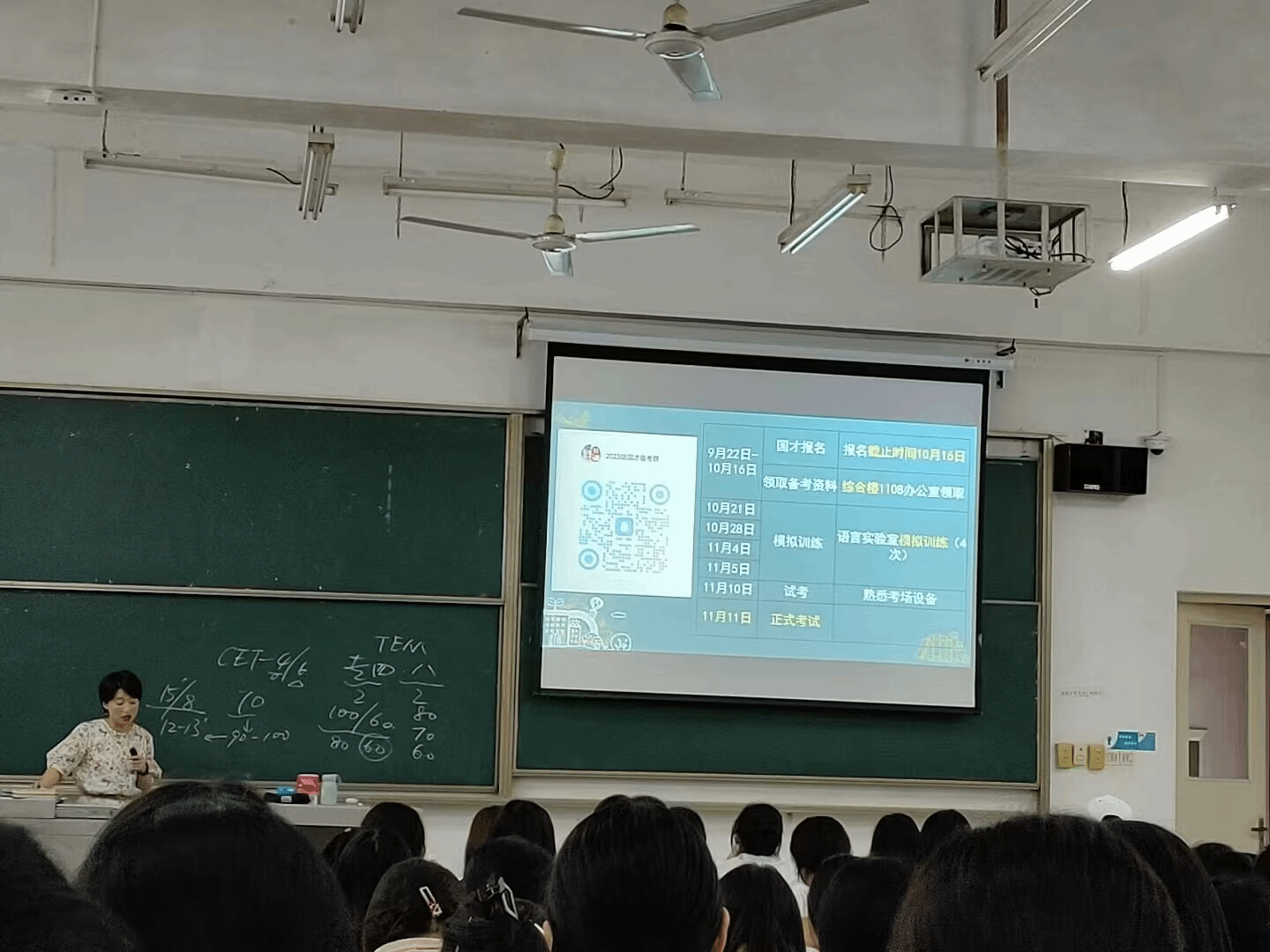 为了加深2023级新生对英语专业的了解程度,拓宽对英语就业的视野,掌握英语就业的职业技能,2023年9月26日下午16:00,外国语学院于教学楼2-101召开国际人才英语考试主题宣讲会。本次会议由在我校从事二十年英语教学事业的王丽丽老师主讲,外国语学院全体同学积极参与了本次会议。