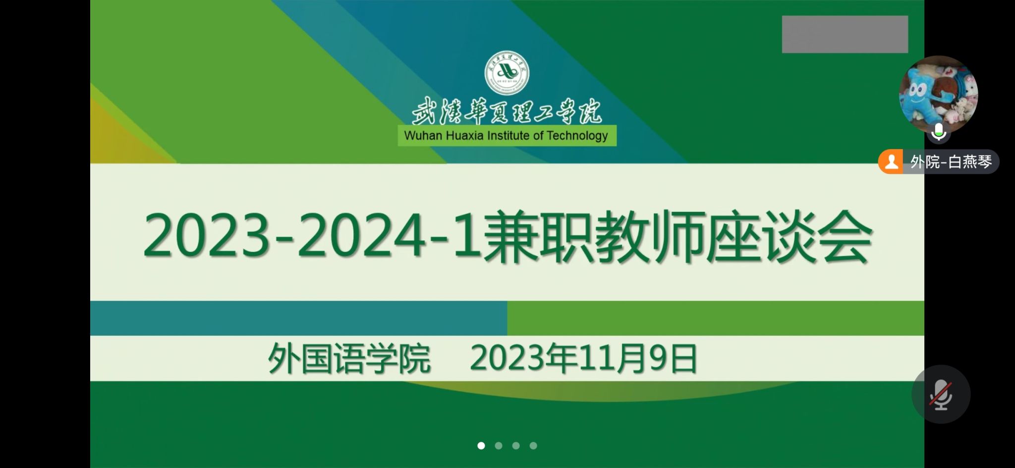 2023年11月9日晚8点,外国语学院通过腾讯会议召开了23-24-1学期期中教学兼职教师检查座谈会。会议由外国语学院副院长白燕琴主持,教务部项金辉副部长,外国语学院刘沛院长,外国语学院副院长曹勇波,各系部主任及全体兼职教师参加了会议。