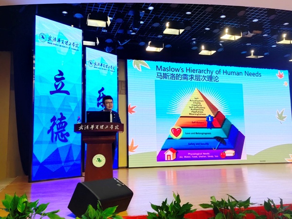 课堂上,刘沛院长首先以马斯洛需求层次理论为切入点,结合自身丰富的教学经验和人生阅历为智能制造学院2020级新生详细剖析了大学应明确的目标、任务和规划。接着,介绍了大学英语作为公共基础课对本科人才培养的理念和思路,详细解析了大学英语这门课的课程设置、培养目标、软硬件设施和考核方法,重点解读了大学英语的学习方法和学习资源。最后在互动环节,刘沛院长解答了同学们有关英语学习的困惑和难点,还提议同学们给自己设定一个小目标,作为一个美好的约定,提醒自己不忘初心,做一个新时代的大学生。