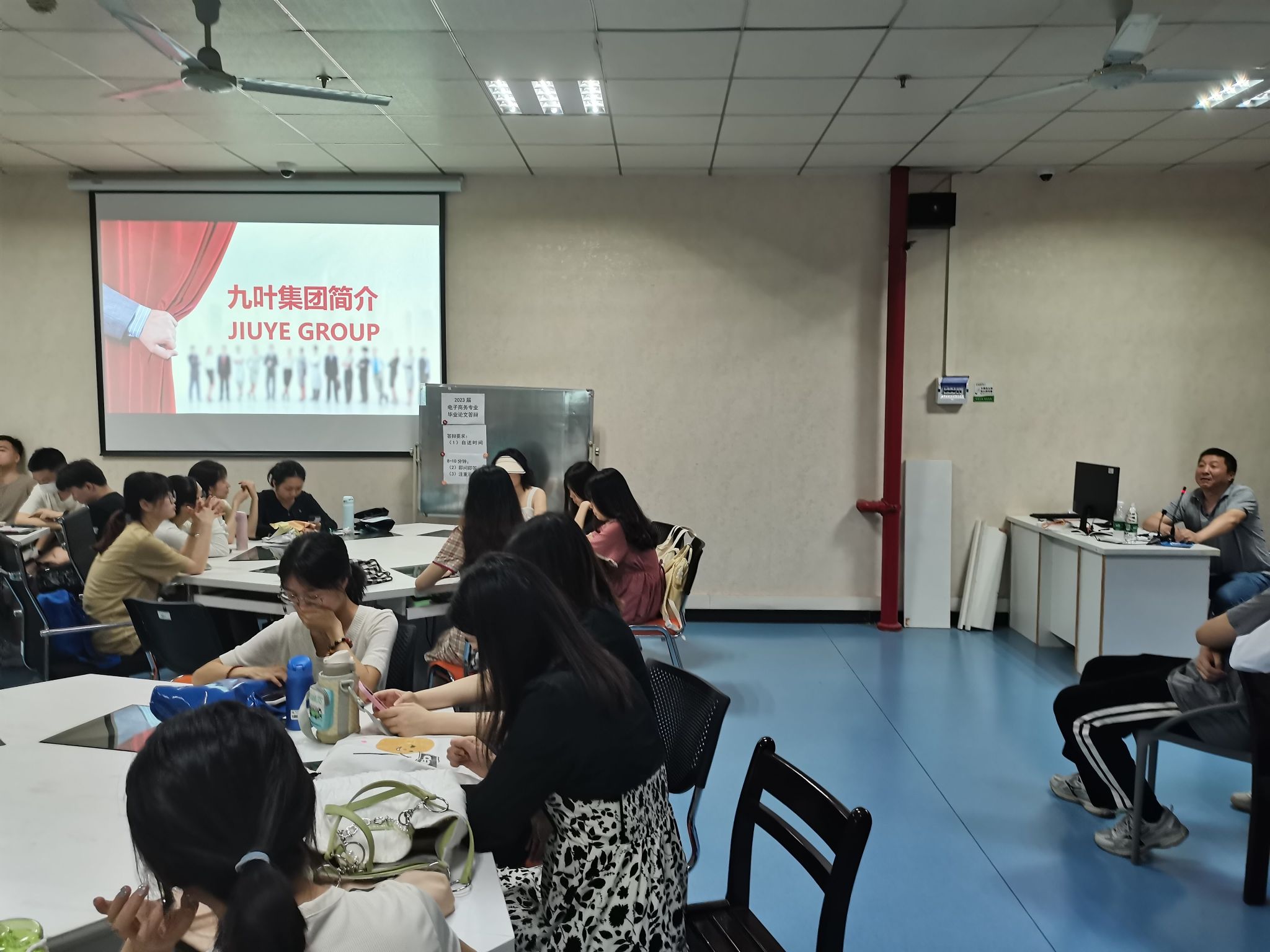 为拓宽我院2023届毕业生的就业渠道,同时推动2024届毕业生实习安排,5月30日上午10点,外国语学院组织在商学院实511教室举行深圳市九叶实业集团有限公司(以下简称九叶集团)实习就业宣讲会,深圳市九叶集团创始人戴浩天主讲,毕业班辅导员龚飞老师组织大三大四80多位同学参会。