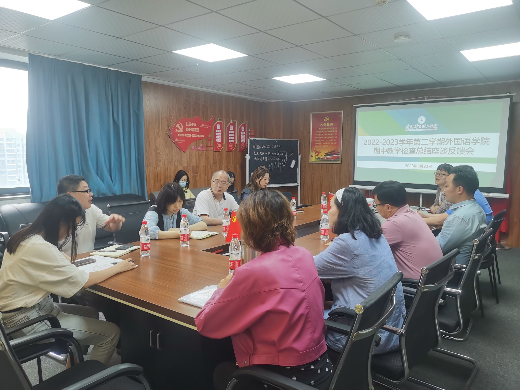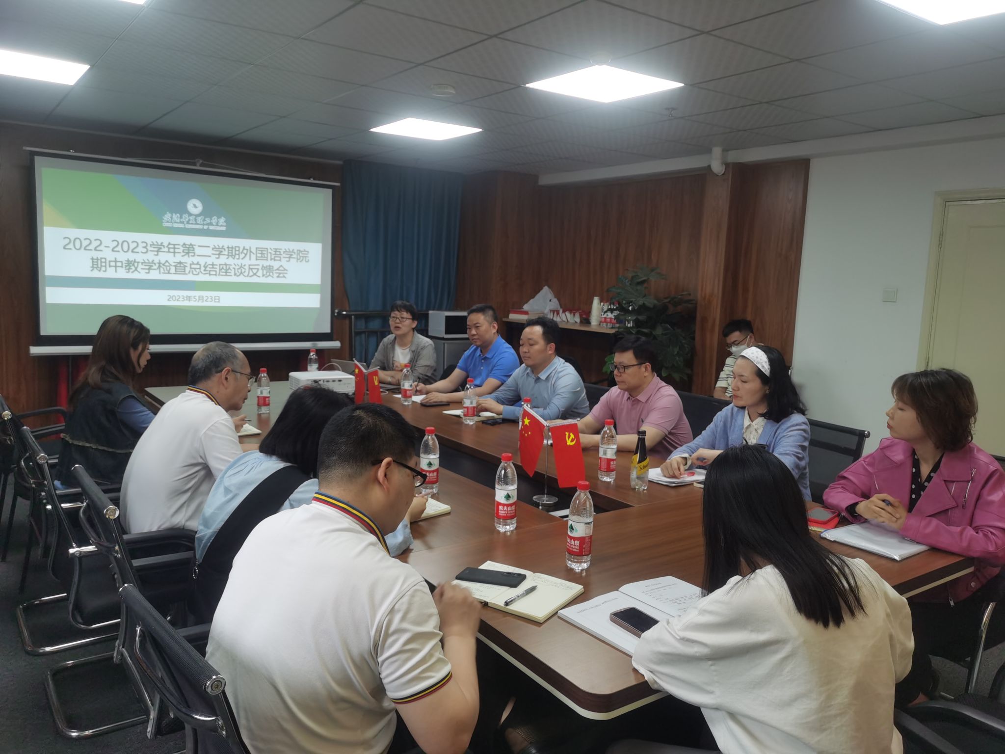 5月23日下午两点,在综合楼1102会议室举行了外国语学院2022-2023学年第二学期期中教学检查工作总结会,参与会议的有丁成忠校长、学校职能部门的领导以及外国语学院院长刘沛、党总支书记马勇、副院长白燕琴、副院长曹勇波以及各系部主任、副主任。