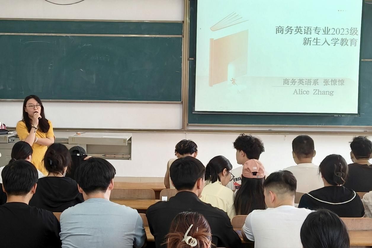 为帮助商务英语专业专升本新生更好地适应大学生活,明确专业学习方向,我院于8月31日14:00在教学楼1-301组织开展了一场商务英语专业专升本新生入学教育活动,由张憭憭老师担任本次活动的主讲人。