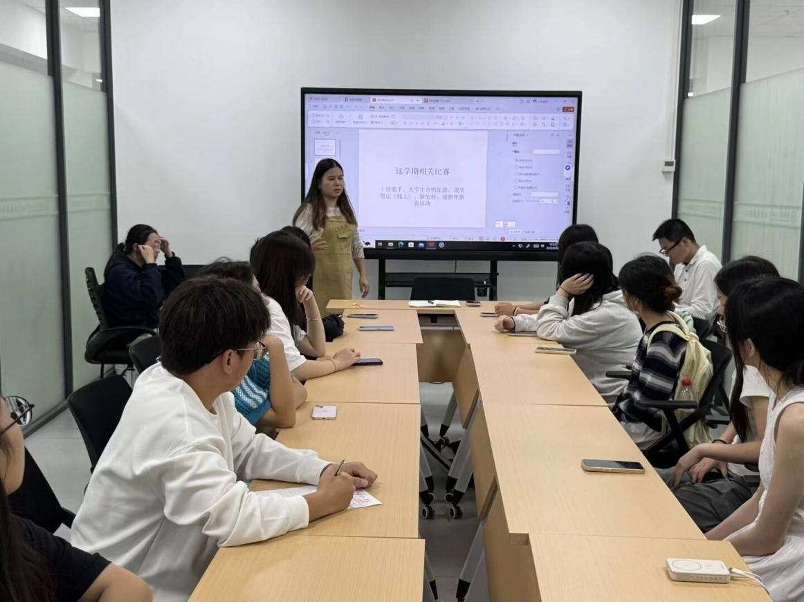 为统筹推进新学期各项工作有序开展,明确工作目标与方向,外国语学院于9月26日12时30分在武汉校区综合楼xg10会议室召开新学期工作部署会议。学院团总支书记王欣佳老师担任主讲,23级导员张补峰老师担任指导老师,学院各部门及各社团负责人参加了本次会议。