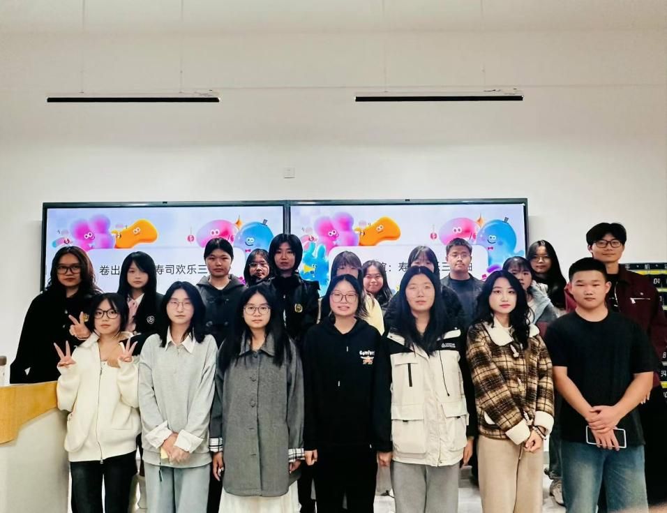 2025年11月10日晚,武汉华夏理工学院青年新声社在梧桐湖校区B202教室成功举办了一场以“卷出友谊:寿司欢乐三部曲”为主题的社团联谊活动。本次活动由袁晓庆老师指导,青年新声社日语部主办、悦读部协办,两部门成员集体参与。旨在通过轻松有趣的互动体验,打破成员间的陌生感,增强社团凝聚力,营造温馨融洽的团体氛围。