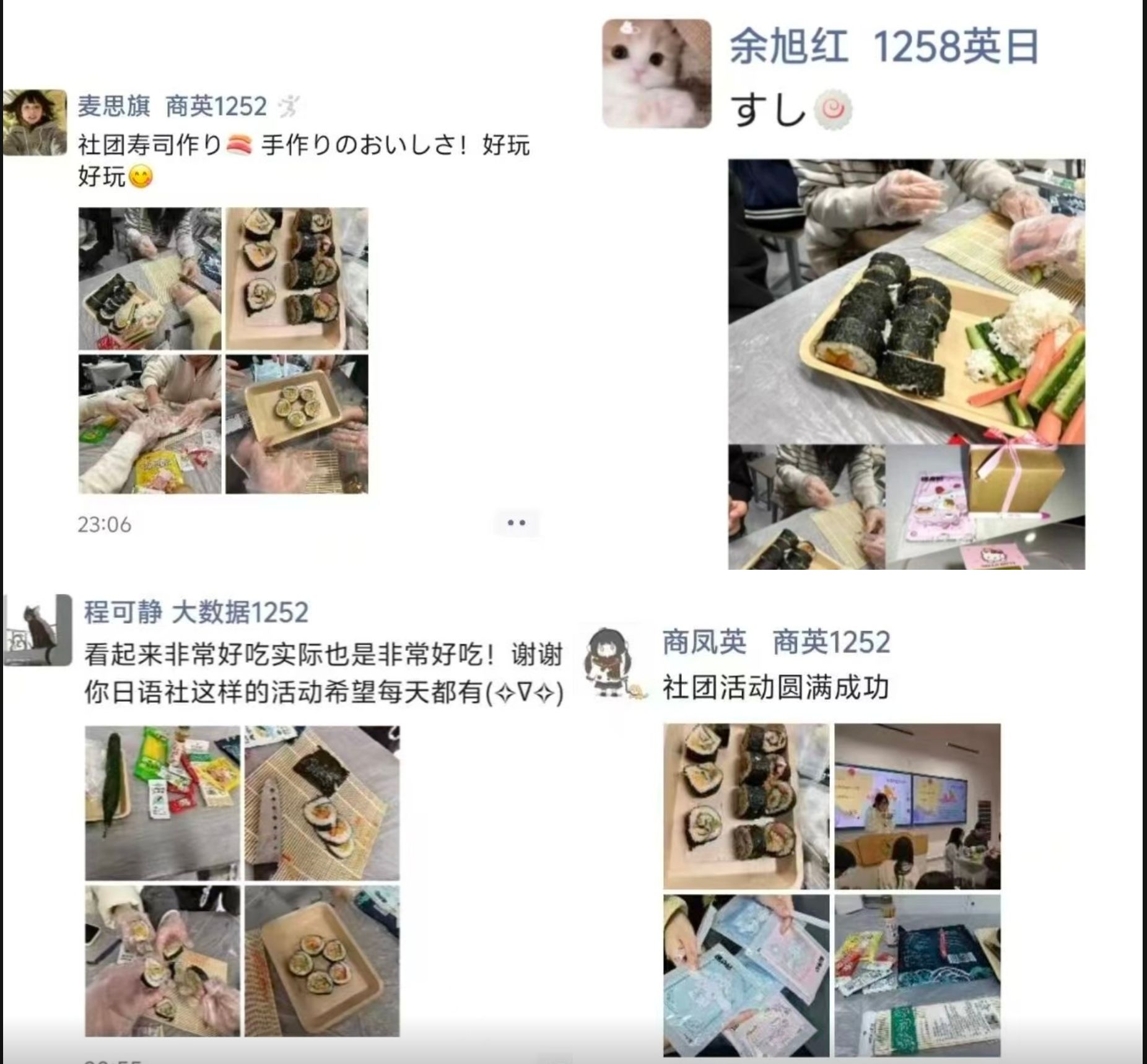 本次社团活动圆满落幕,欢声笑语中,大家不仅学会了寿司制作技巧,更收获了友谊与乐趣。活动结束后,众多参与者纷纷在朋友圈分享亲手制作的成果与活动点滴,一张张美图、一段段感言,让这份温暖与美味持续传递,也为社团活动留下了鲜活而珍贵的印记。