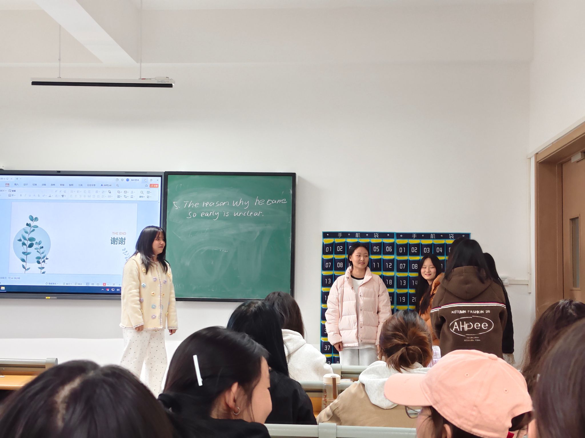 英教1252第一小组的六个同学围绕“压力”这个主题进行了情景表演。六人分别饰演小雨,阿强,小妹,老周,小杨和李老师。 除了李老师外的五人开始分别阐述自己的烦恼。 小雨的烦恼是学习压力大,完美主义。阿强的烦恼是兼职打工,经济压力重。小美的烦恼是论文压力大,焦虑。老周的烦恼是就业压力,迷茫。小杨的压力是恋爱压力,情绪低落。五人分别向李老师阐述压力,李老师对她们进行宽慰后,五人互相安慰与调解。