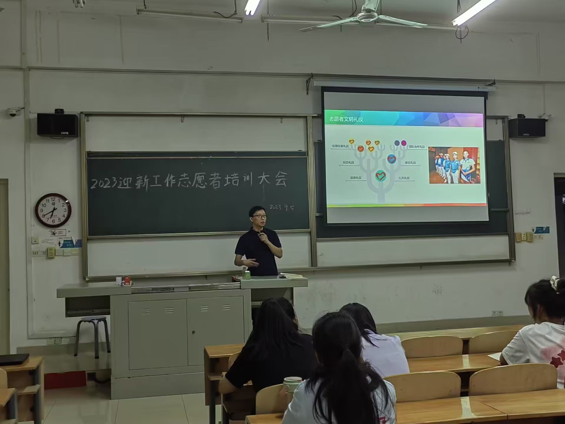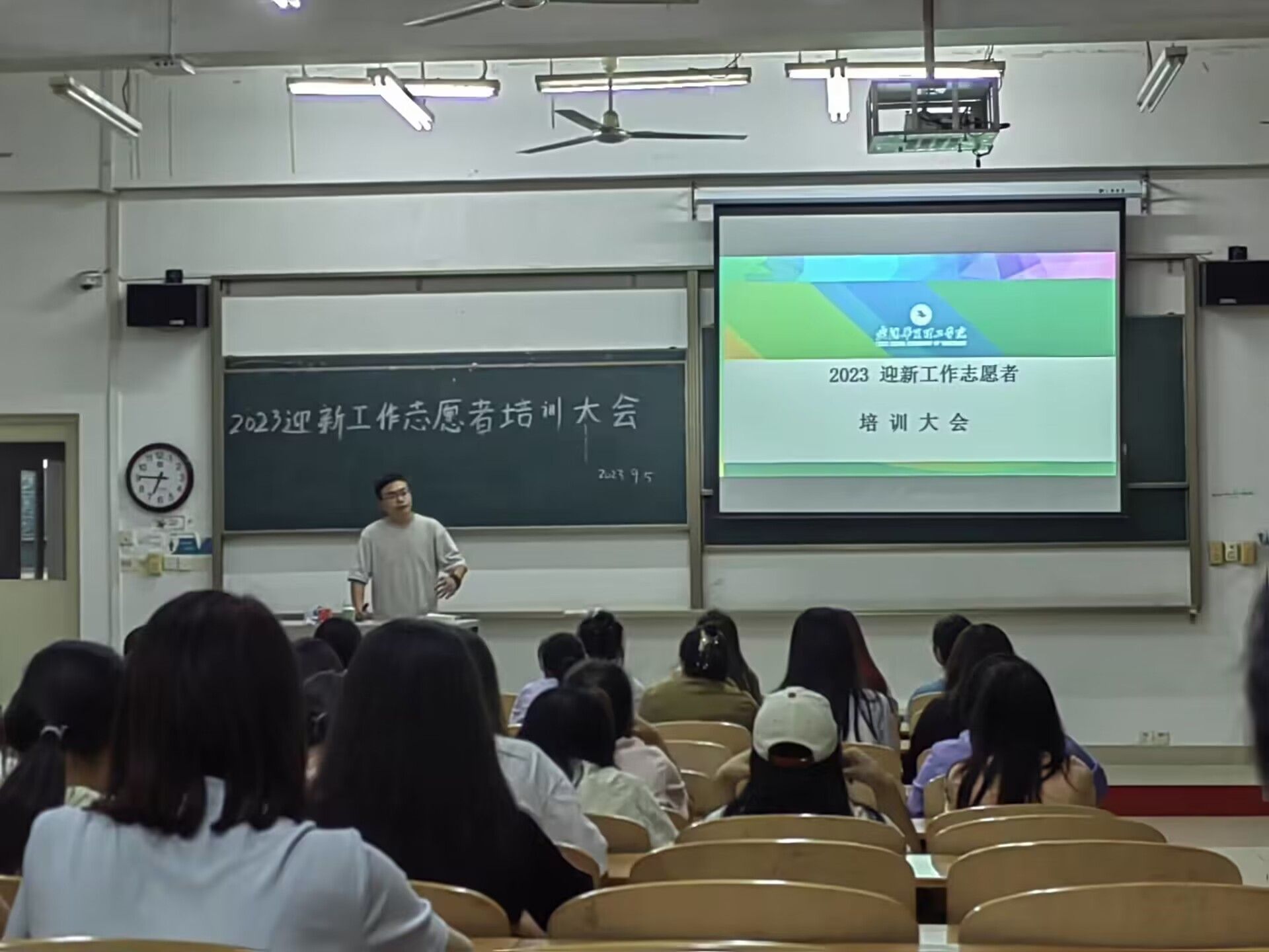 为更好迎接2023级新生的到来,做好新生入学工作,武汉华夏理工学院外国语学院于9月5日晚18:30在教学楼2教101进行了2023迎新志愿者培训大会。学工办主任杨洋、2023级新生辅导员杨森出席了本次会议。