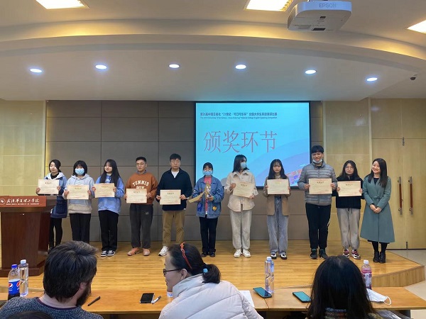 外国语学院院长助理白燕琴、国才中心主任王丽丽,外院张娱老师、黄希老师和外教|euan Jenkins老师担任了此次校园赛的评委。获得特等奖的选手将代表我校参加湖北省省赛,预祝选手取得好成绩!