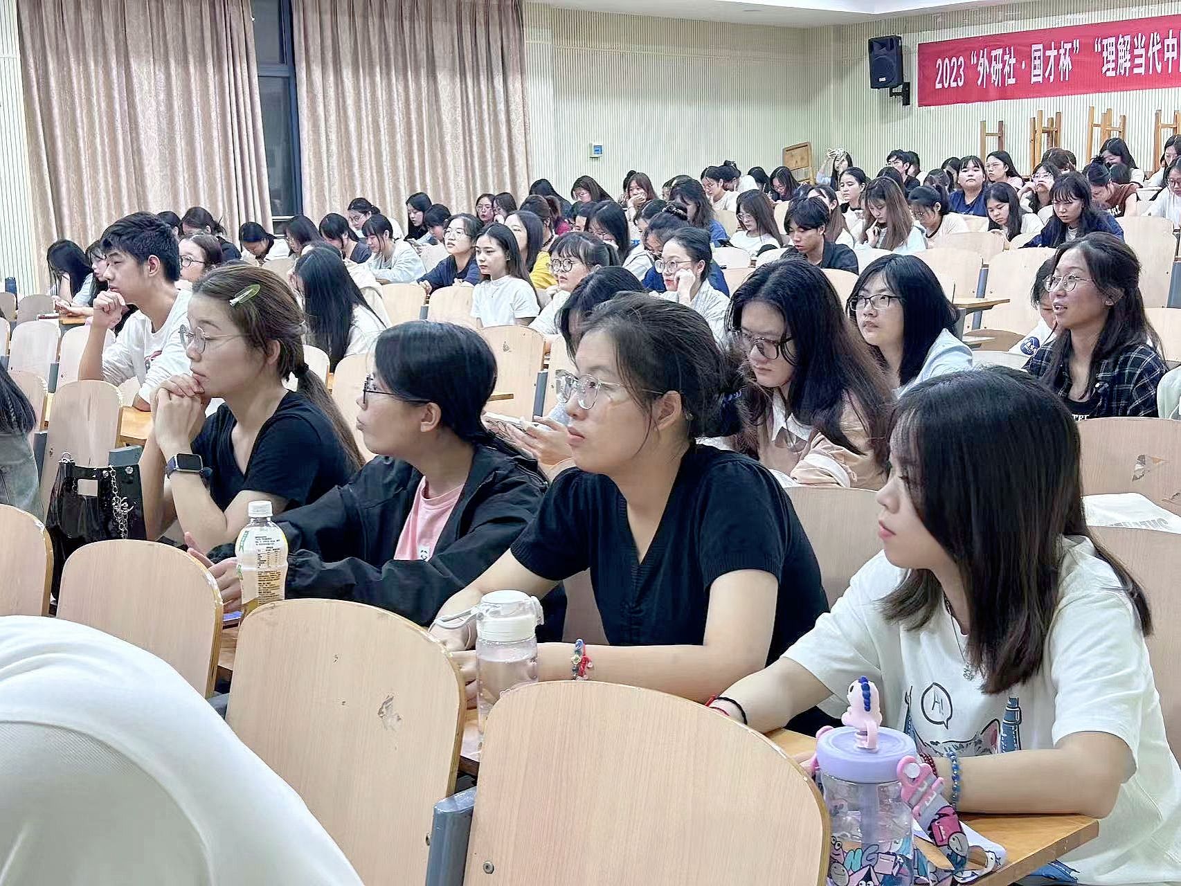 为深入学习贯彻党的二十大精神,落实立德树人根本任务,推动“三进”工作纵深发展,外国语学院9月27日晚于2教201举办了2023“外研社·国才杯”“理解当代中国”全国大学生外语能力大赛武汉华夏理工学院演讲比赛。比赛现场座无虚席,抖音直播间也热闹非凡。