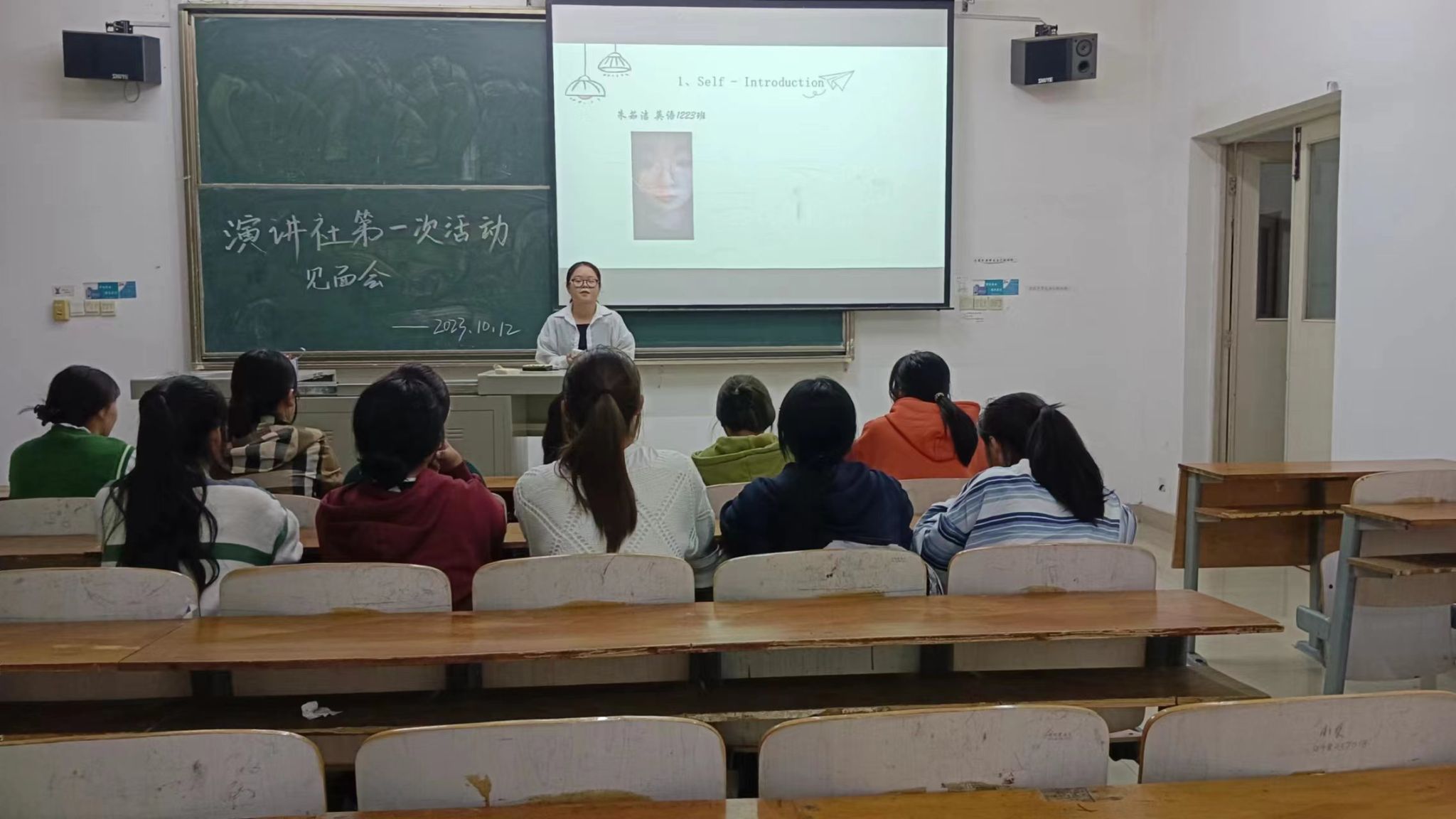2023年10月12日星期四晚上八点二十,由英语演讲社社长朱茹洁组织新入社的社员们在教学楼3-203教室举行了新社员见面会。这次见面会共计14人参加,主要是让来自各个不同专业、班级的成员相互认识,促进社员感情。