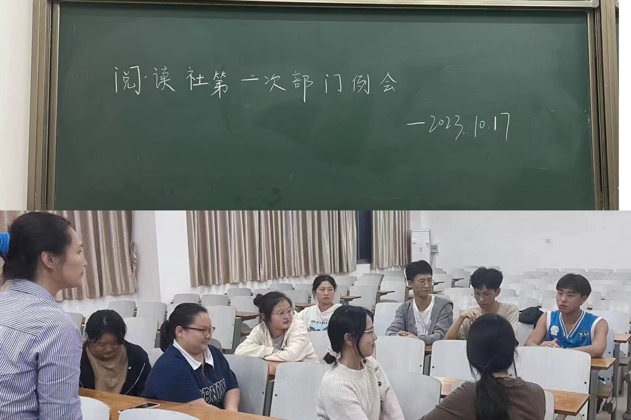 招新和换届过后,青年新声社悦读部社团于本周第七教学周在教学楼3-307开展第一次活动。参加者来自21级、22级和23级不同专业班级的数十位同学。他们在悦读社社长陈旭同学的组织下,依次自我介绍、分享以往的阅读经历和参加社团的初衷。大一的同学怀揣着美好的憧憬,想多融入阅读者的氛围;大二的同学有着哲学般的洞察,想多阅读让浮躁的心安静下来;大三的学长是外研社全国英语阅读大赛校赛一等奖的获得者,想多了解纯英文和中英双语阅读的知识。