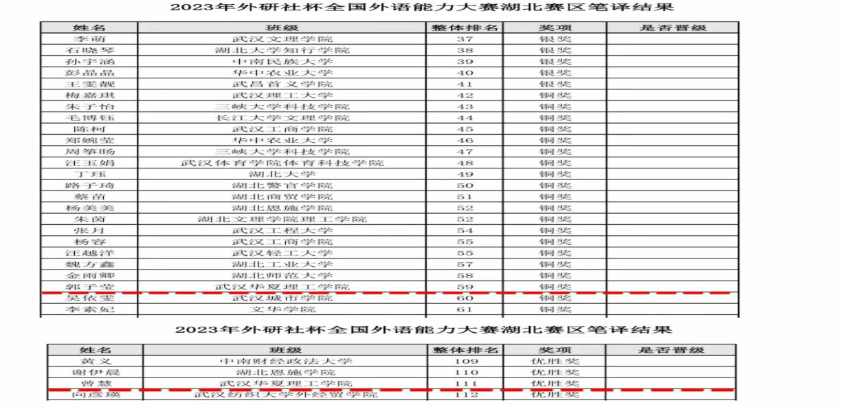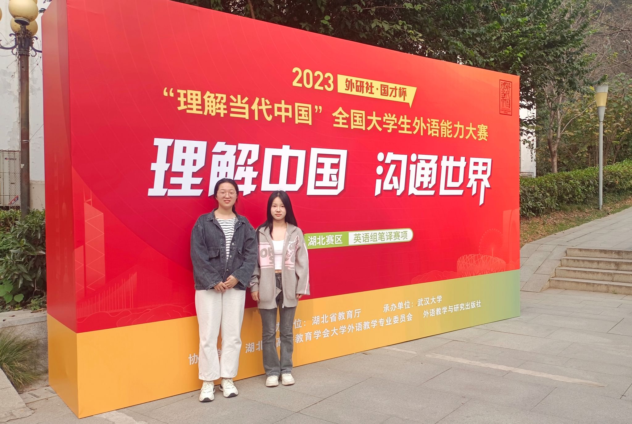 10月28日15:00-18:00,2023年“外研社·国才杯”“理解当代中国”全国大学生外语能力大赛湖北赛区英语组笔译赛项于武汉大学举行。我校学子郭子莹和曾慧分别荣获了铜奖和优秀奖的佳绩。