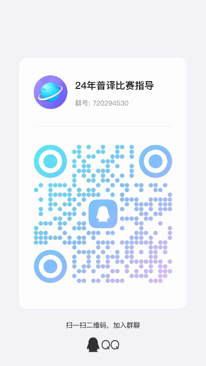 已报名2024年第八届普译奖全国大学生翻译比赛的学生,可以加入QQ群(QQ群号:720294530),联系指导老师指导参赛。