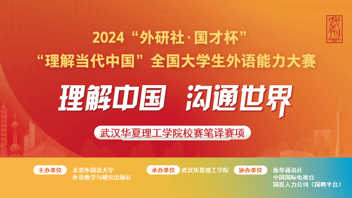 据悉,2024“外研社·国才杯”“理解当代中国”全国大学生外语能力大赛以习近平新时代中国特色社会主义思想为指导,深入贯彻党的二十大精神,旨在推动“三进”工作、创新课程思政,深化教育改革、培育外语人才,讲好中国故事、服务国际传播。该项赛事创办已有20余年,2023年开始设置笔译分赛项。本次比赛的获奖选手将代表我校参加2024“外研社·国才杯”“理解当代中国”全国大学生外语能力大赛英语组笔译赛项湖北省复赛。