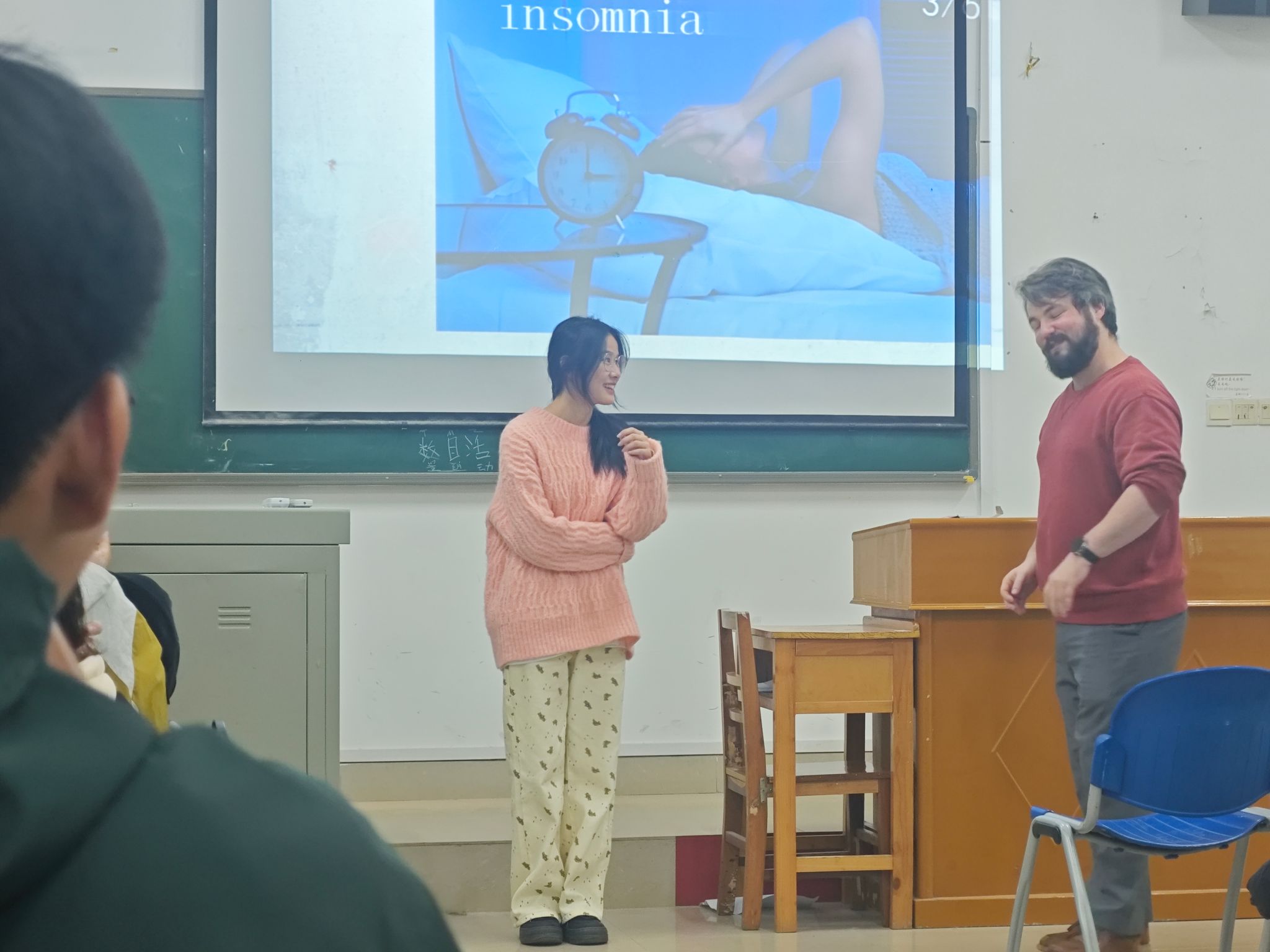 本学期的第七次英语角,同时也是最后一期,在 3-503 教室顺利展开。本期的主题是“Sleep”,围绕该主题外教与同学们展开了讨论。
