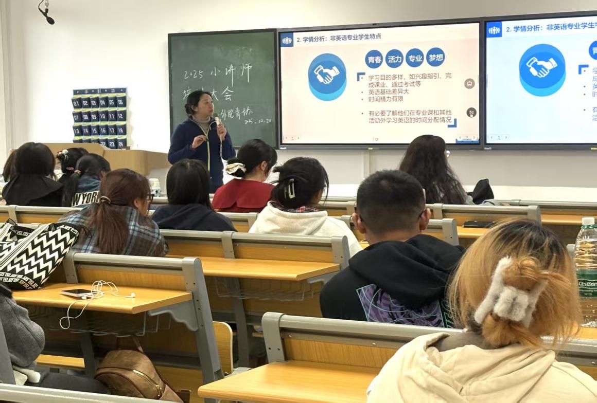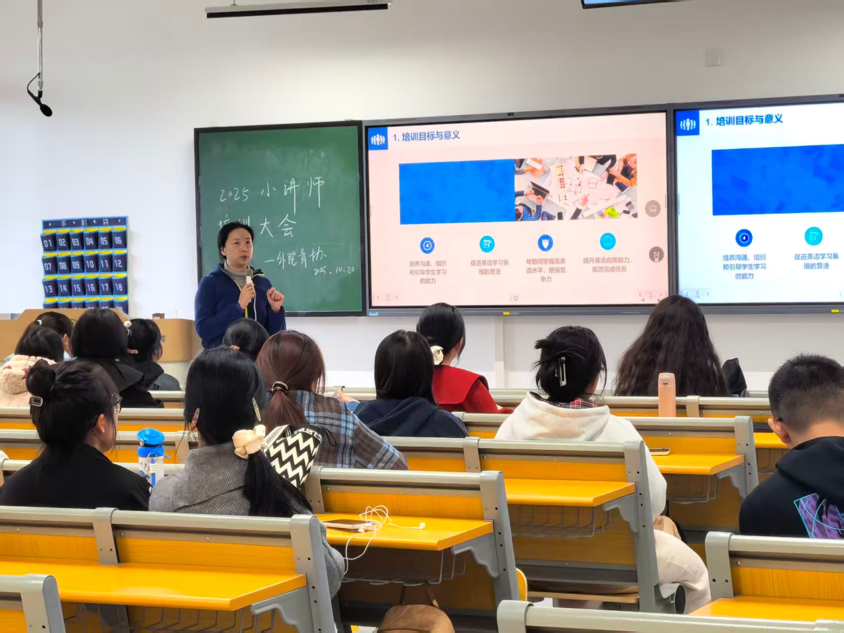 培训期间,我院邀请了资深老师颜楠担任讲师,课程设计紧扣培训"目的、意义、实践"等核心,从英语发音技巧拆解、课堂互动环节设计,到教学案例分析与突发情况应对,授课老师通过生动形象地讲解,将专业知识转化为小讲师们能够深刻领会并灵活掌握的内容。参与此次大会的小讲师们全程专注投入,积极分享讲解思路,讨论实际课堂上的讲解技巧和有效的传授方法。