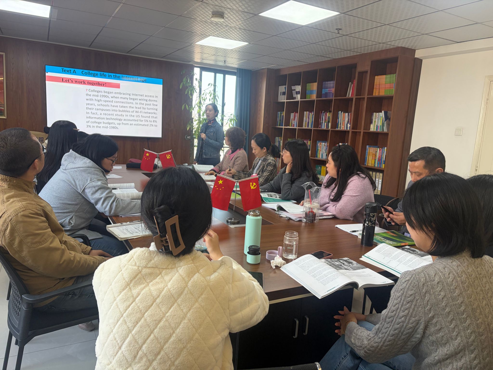 11月15日,武汉华夏理工学院大学英语部在主任刘黎黎的领导下,举行了一场高质量、深层次的《新视野大学英语读写教程1》第三单元“Digital Campus”集体备课会。本次活动一改传统模式,创新性地融合了小组汇报、同行评议与“学生视角”体验,生动展示了一套科学、成熟的教学设计流程。