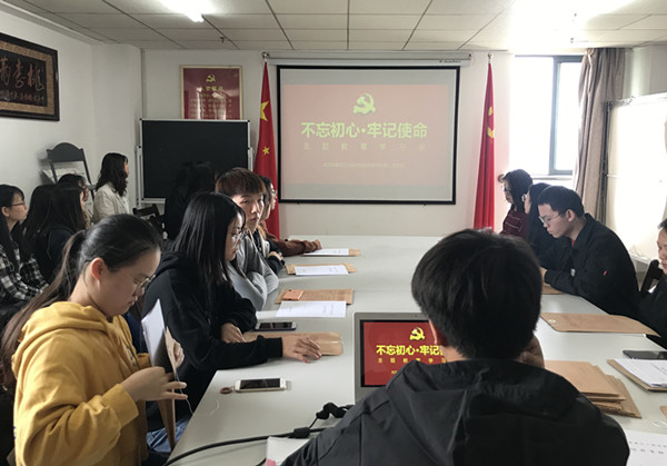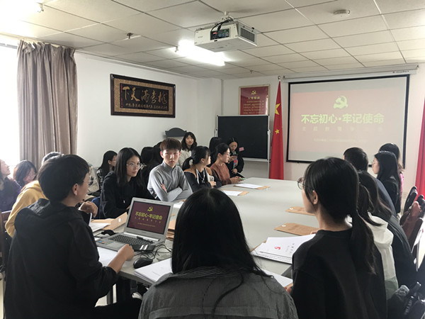 为进一步提高外国语学院17级同学们的党性修养和思想道德觉悟,明确新时代我国需要的人才要求。2019年10月9日12:10分,外国语学院学生第二党支部开展了“不忘初心、牢记使命”——主题教育学习。本次会议由学生第二党支部书记陈卓老师主持,参加此次会议的人员有17级全体预备党员和新发展对象。