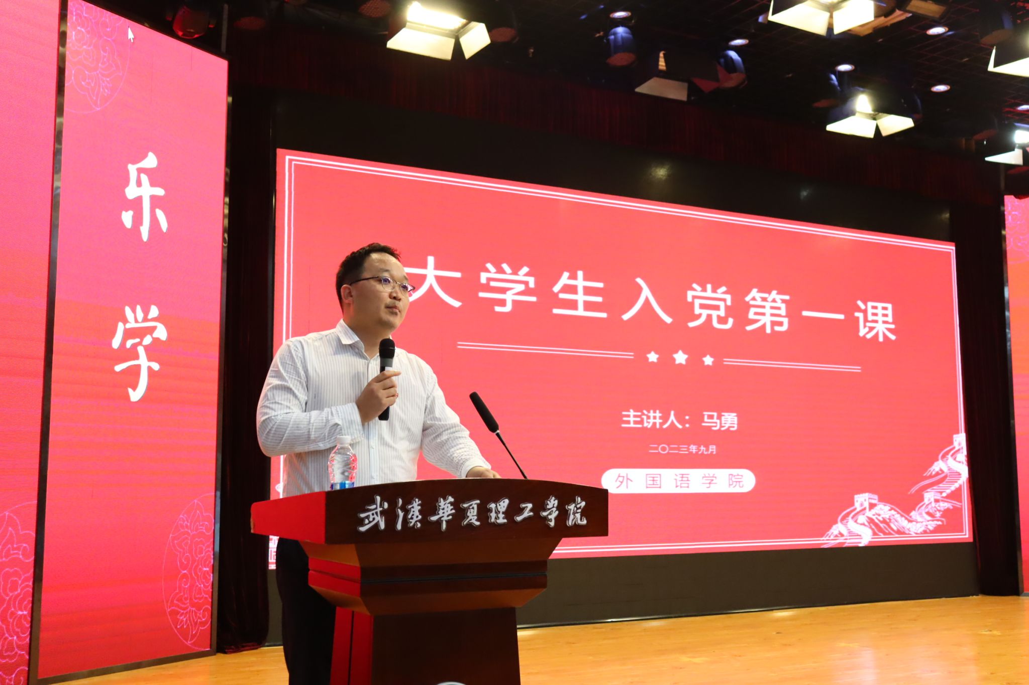 外国语学院党总支书记马勇为2023级新生开展入党第一课专题党课