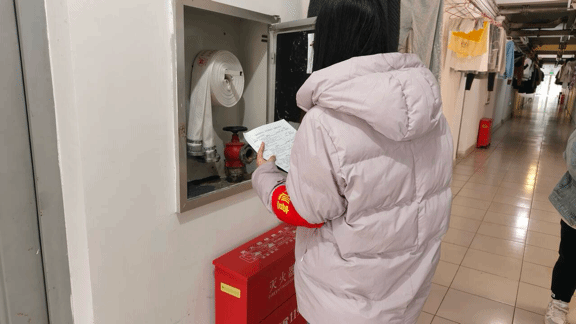 聚焦公共区域,学生党员重点针对消火栓、灭火器等消防设施进行核查,同时,积极排查楼道堆物、通道堵塞及线路老化、宿舍有无违禁电器等隐患。对设施故障类问题,也登记并反馈至维修人员及宿管跟进整改;对违规小广告、涂鸦问题,学生党员及时清理,确保社区美观整洁。同时,学生党员也倾听同学们的生活需求与改进建议,引导同学们共同守护社区安全。