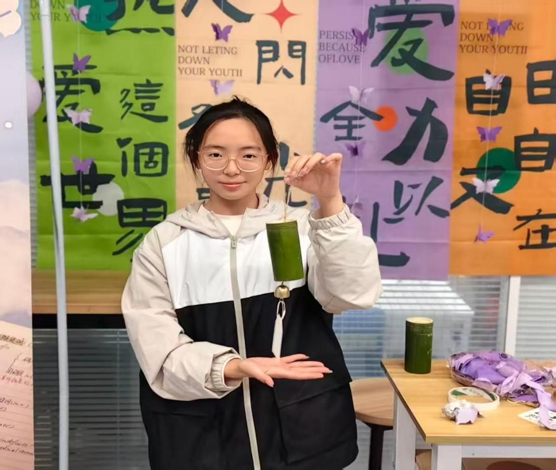在制作过程中,参与的同学将天然材料的质朴与自身巧思创意,一同融入每一件风铃作品中。他们让手作的温度与学风的内涵相互交织,通过互相配合制作风铃,不仅拉近了彼此距离,更在协作中培养了团队意识。通过一番创作,同学们的作品都各具特色:有的带着环保自然的质感,有的用果壳挂件增添清新气息,还有的用铃铛增添趣味性。当面对镜头时,参与的同学自信地展示着精心制作的成果,表示出制作风铃的过程让他们成就感满满。