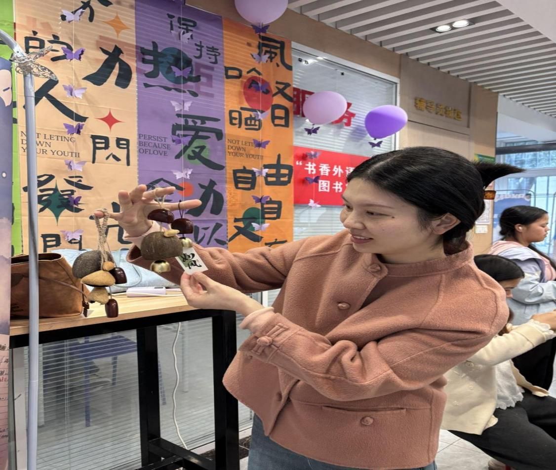现场笑声与风铃碰撞的清脆声响交织,成了社区最特别的“学风旋律”。本次活动中,学院郭晨艳老师也参与其中,亲手制作风铃作品,将创意巧思融入手工创作,同时与身旁学生交流创作思路,耐心分享手工技巧,以实际参与的方式与同学们互动交流,轻松的互动让现场氛围更显融洽,也让师生间的距离进一步拉近,活跃活动氛围的同时,展现出师生共融的良好风貌。
